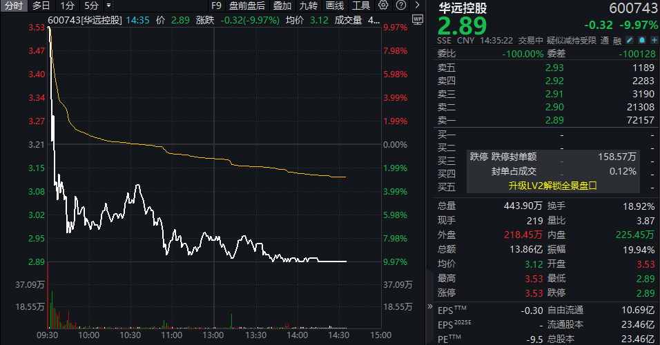 15日午后,刚刚斩获“六连板”的华远控股(600743)走出“天地板”行情。
